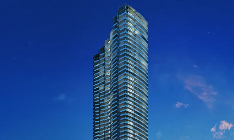 Design and Architecture: A contemporary 75-story glass tower with a wave-like design.